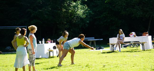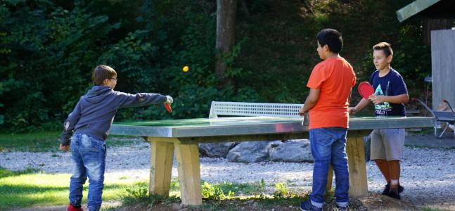 Ein riesiges Gelände mit Wald und Wiese zum Toben und Spielen sowie Fußballtore, aber auch Rückzugsmöglichkeiten und ruhige Ecken zum Ausspannen.